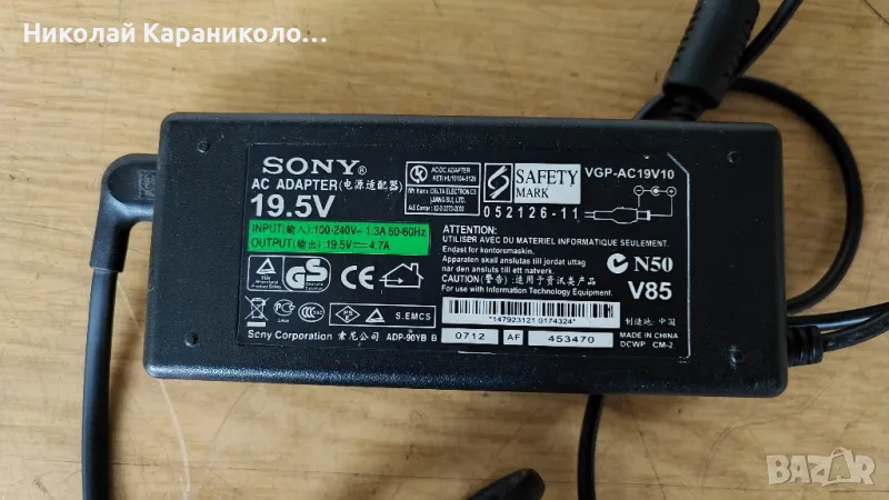Захранващ адаптор-19.5V 4.7A,МОДЕЛ-VGP-AC19V10 - цена 23 евро.