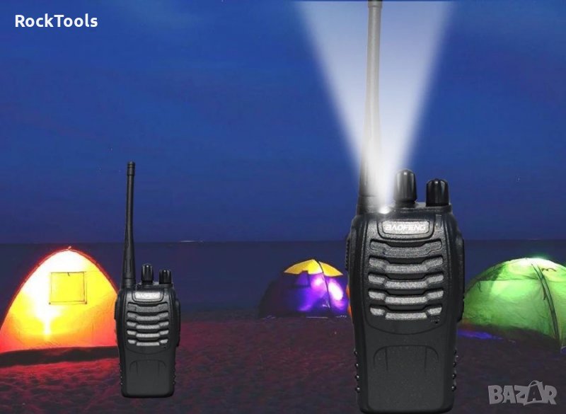 Комплект от 2бр. радиостанции Baofeng BF-888S с обхват до 6км. Независимо дали сте на лов, риболов, за охрана с този уред ще имате винаги връзка.Поддържа високи честоти с 16 канала, които се сменят посредством копчето до антената. За допълнителна помощ радиостанцията е оборудвана с фенерче. Компактните размери я правят удобна за носене дори в джоб.Диапазона на честотите е от 400 до 470mHz и благодарение на това лесно се преодоляват препядствия като стени, гористи местности и различни терени.Радиостанциите са изработени от здрава пластмаса, която предпазва вътрешността от удари, вода и замърсяване,