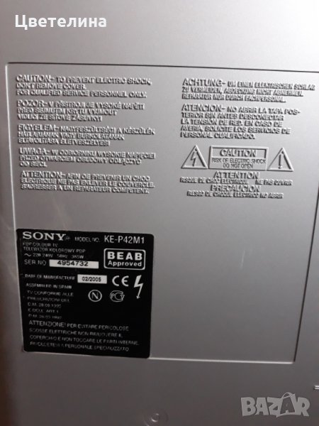 Телевизор SONY 42" , плазмен, външни размери на екрана 110см/ 75см. Работеше , но в последствие изгуби картина, има говор. За части.