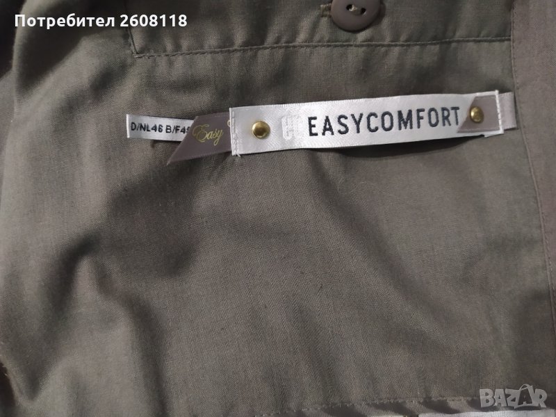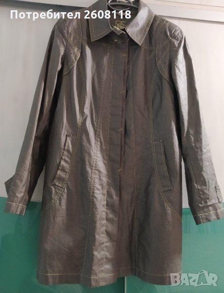 Оригинално, спортно елегантно манто на Easy Comfort. Сиво-зелено каки цвят с лек проблясък. Промазана (памук) шлиферна материя. Размер №46 (XL). Малко носено, абсолютно запазено!