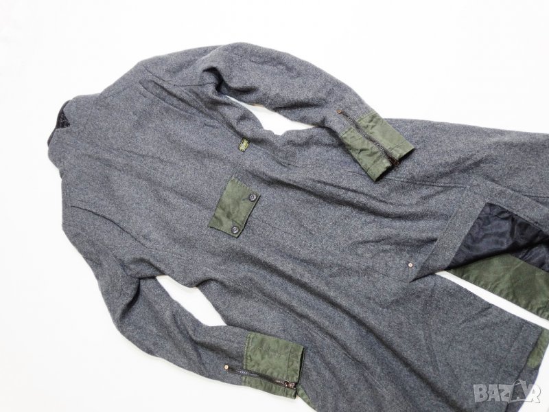 Палтото е неразличимо от ново, не е носено никога, дълго в милитъри стил, специална продукция за G-star 2012, рядкост, дължина от рамо 105см, рамена 41см, подмишници 50см, талия 44см, долу 82см, състав: 65% Wool, 35% Acrylic, цвят: Dark Grey Heather. Реална цена $220