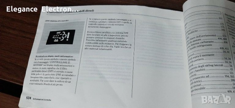 Продавам ръководство за експлоатация Honda Cr-v 3 генерация на Италиянски език, без липсващи страници. За повече информация пишете отговарям бързо или звъннете на посочения телефон. БЛАГОДАРЯ РАЗГЛЕДАЙТЕ И ДРУГИТЕ МИ ОБЯВИ!
