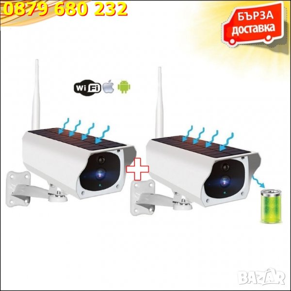 Комплект 2 бр водоустойчива WIFI соларна безкабелна камера FULLHD
