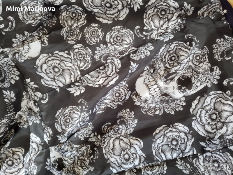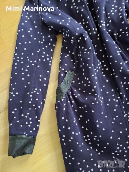Тъмно синьо палто на звездички с кожени елементи → Обява 32288064