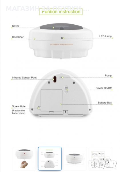 Автоматичен диспенсър за дезинфектант или течен сапун. Чисто нов е, само изпробван. Подложката е правена от мен, с включени батерии, перфектно състояние.. Продавам го, тъй като не ми е подходящо мястото за такъв вид. С направата на подложката ми струва 120лв. Продавам го за 99лв.