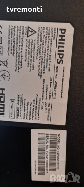 ЗАХРАНВАНЕ- TPV 715G8620-P01-000-002S Борда е гарантирано работещ Демонтиран от телевизор PHILIPS 43PUS6162/12 със счупен дисплей TPT430U3-EQYSHM.G REV.S1V тествана от нашия техник