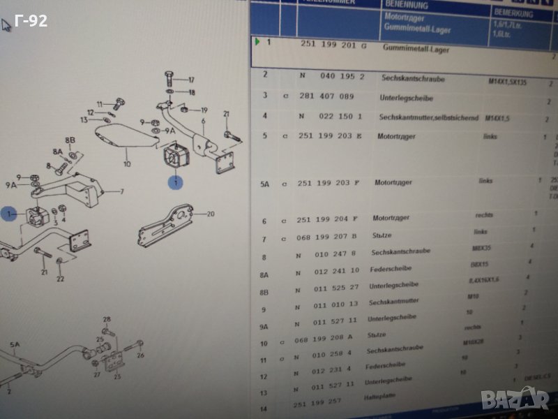 251199201G**NEU**LMI*тампон двигател L / R VW T2 1.6 / 1,7 D,1980 -