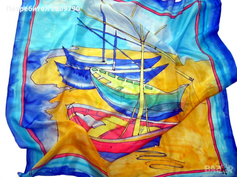 Ръчно изработен копринен моден шал Размер 90 см х 90 см
