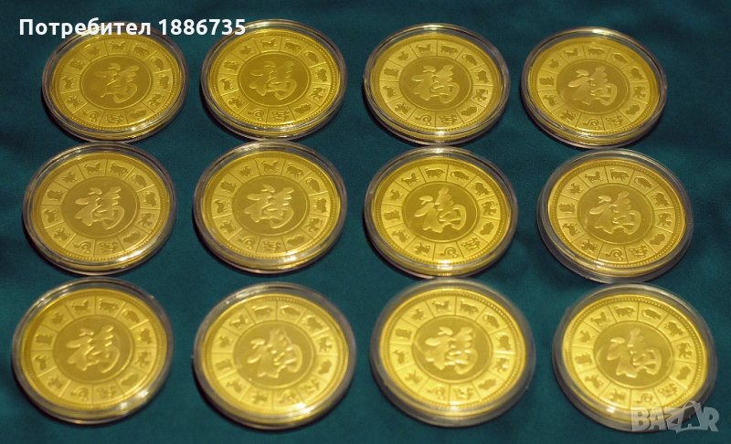 Комплект 12 монети китайски лунен зодиак в капсули .