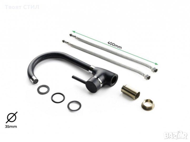 Смесител 5000 може лесно да се инсталира сам, а комплектът включва инструкции и комплект необходими 40 см дълги маркучи за свързване.