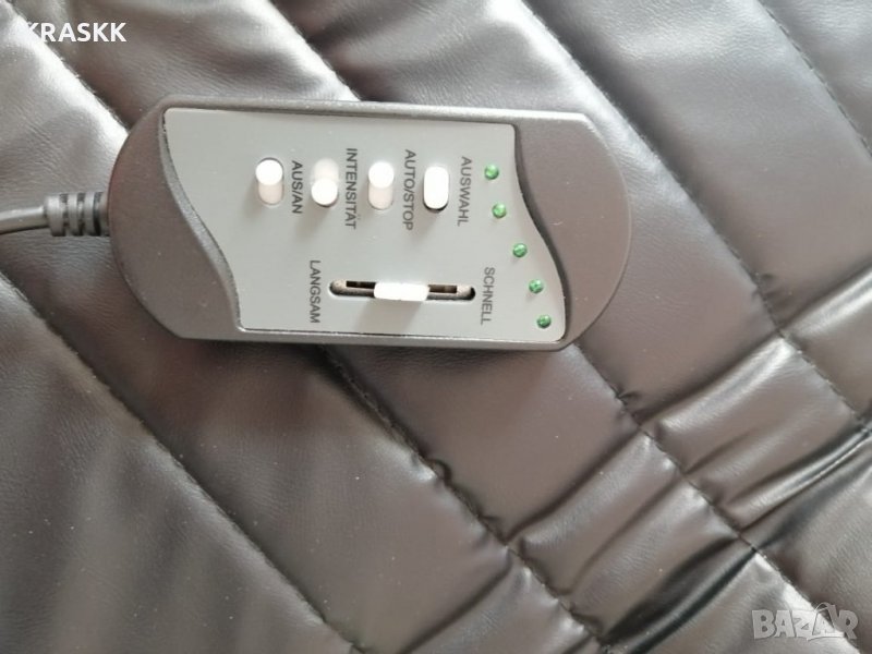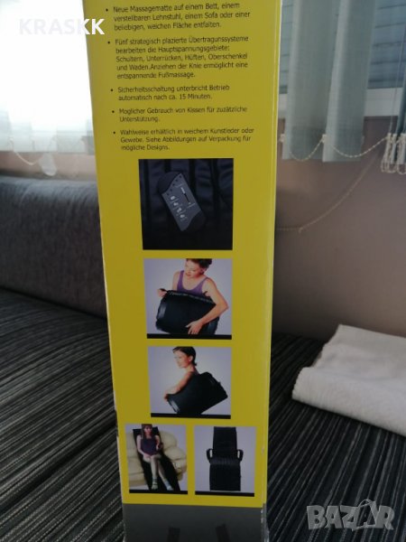 Продавам преносим масажиращ матрак ''BECK'' Hommassage de Luxe 2000 , подходящ за домашна или офис употреба. Матракът може да се сложи на легло, диван, кресло или на офис стол, като за целта има крепителни уши тип "таралежки". Купуван е нов от фирма ''BECK'' и има 3 масажиращи зони с 5 различни режима на работа на вибриращите глави! Изцяло е в калъф от еко кожа, който не е свалян, с адаптер за захранване и пулт за управление на видовете масаж! Цената подлежи на лек коментар, при сериозен интерес! Изпращам по Еконт или Спиди с наложен платеж за ваша сметка! Целия матрак е не повече от 3 кг, но е в пакет с размери 60х60х15 см