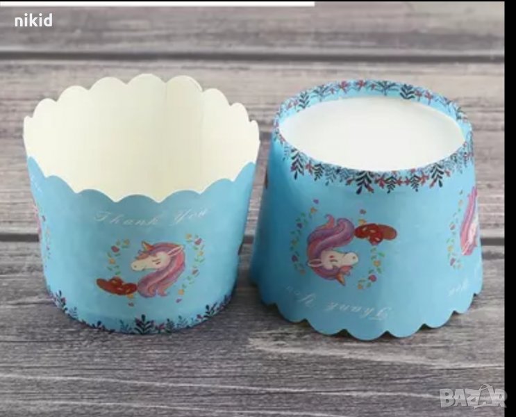 10 бр сини Еднорог Картонени хартиени кошнички КъпкейК капсули поставки чашки за мъфини кексчета → Обява 32306262