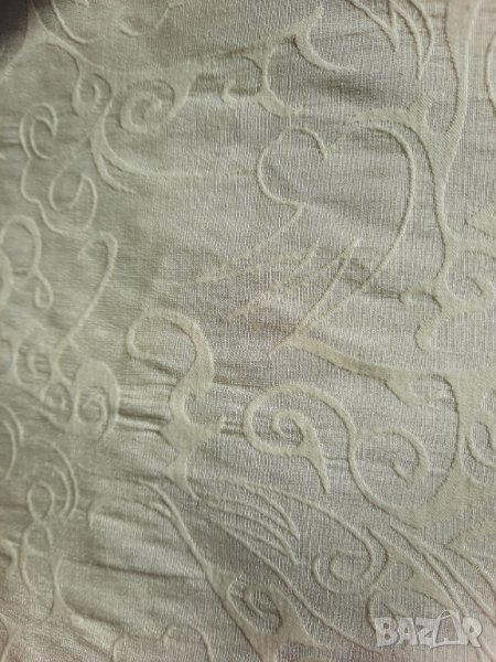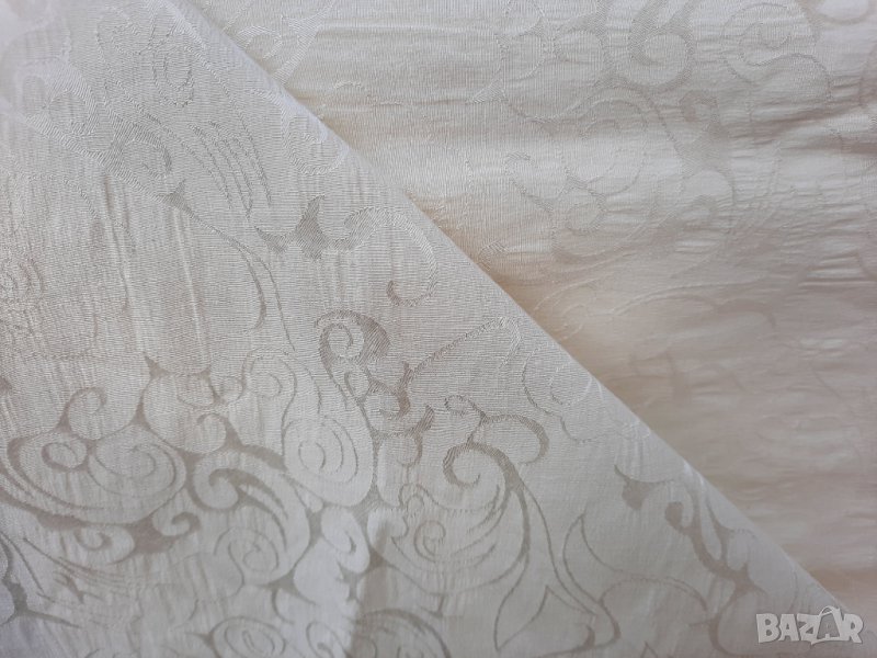 Зелен жакард, висок процент памук + еластан. Плътен. От едната страна на плата шарката е сатенирана, от другата матова. Ширина 140 см., дължина 320 см. Цената е за цялото парче.