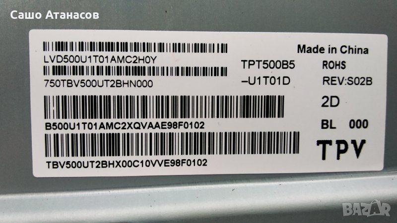 PHILIPS 50PUS6754/12 със счупена матрица ( TPT500B5-U1T01D )