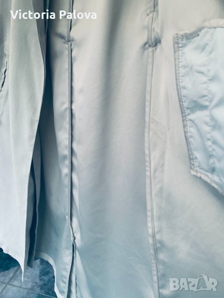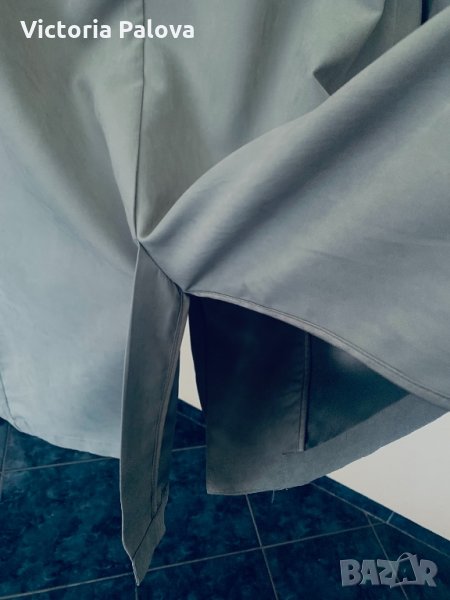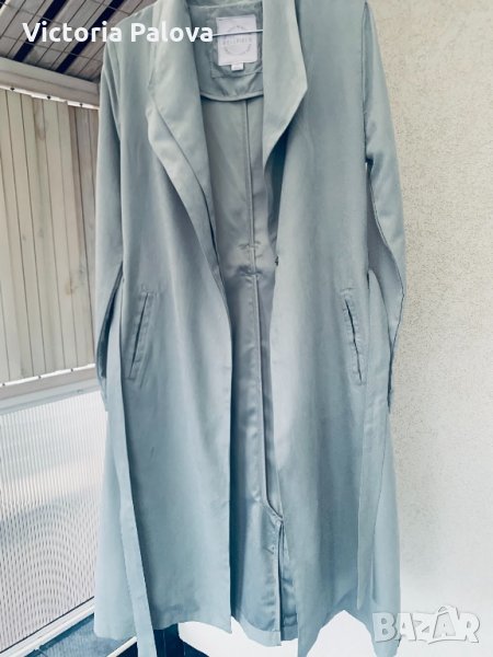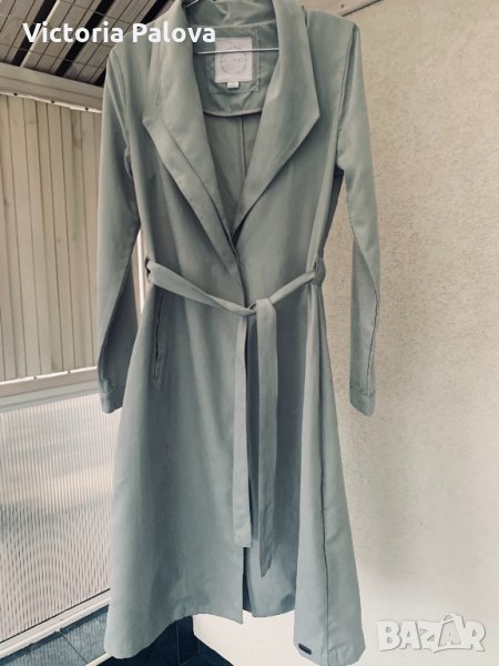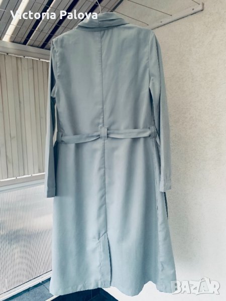 Невероятен дизайн,плътна ,но мека материя,особено красив и модерен цвят мента,много актуален в момента.рамене-40-41см,ГО-50-51см,талия-45см,ханш-58см,дължина-109см,ръкав-62см от рамо,45см от подмишница.ръкавът е тесен 16 см.
