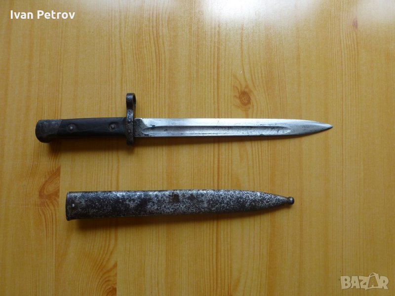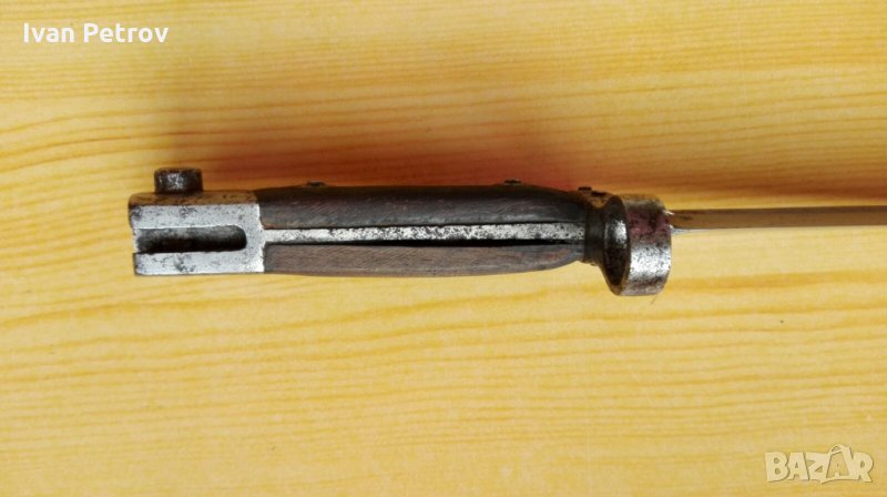 Продавам войнишки нож-щик Mannlicher, модел 1895г., оригинал, № 70 42, работещ монтаж за пушка – бутон, пружина и зъб, с оригинална метална кания и задържаща пружина в нея.