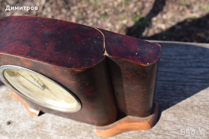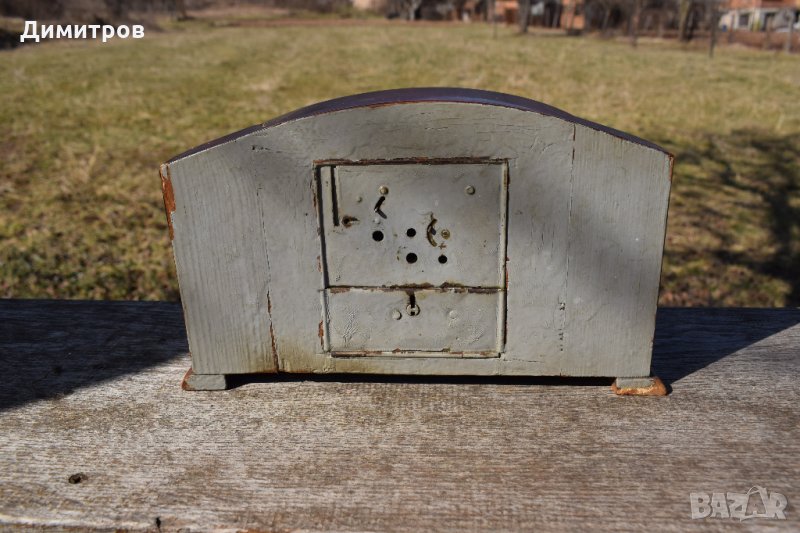 Стар немски часовник с тайно отделение-касичка. Часовника е красив и запазен за годините си. Нуждае се от почистване и ще заработи. От някой от предишните собственици е боядисван отзад със сива боя. Забележките се виждат на снимките!