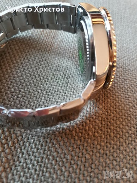 Стомана полирана L316, автоматик, черен циферблат с дата в позиция 3 часа, фосфоресциращи стрелки, въртящ се безел в черно.Опция оригинална кутия Rolex - 50 лв.