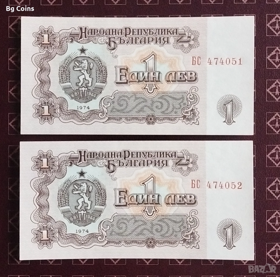 1 лев 1974 6 цифри Поредни номера , снимка 1 - Нумизматика и бонистика - 32324737 1 лев 1974 6 цифри Поредни номера , снимка 2 - Нумизматика и бонистика - 32324737 1/2