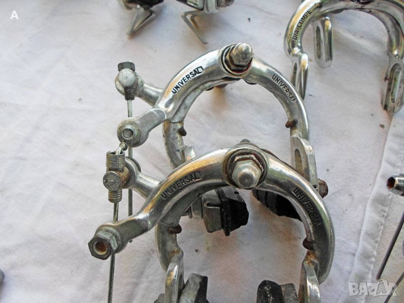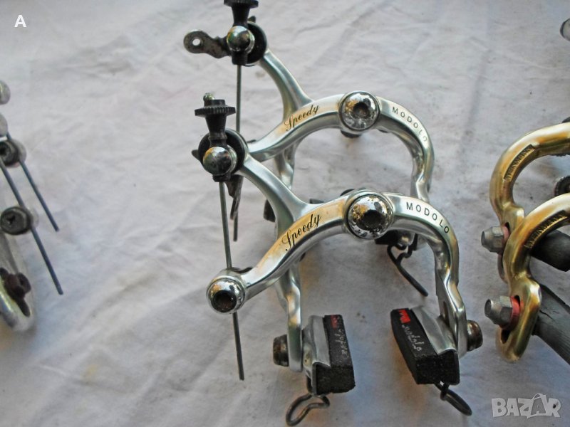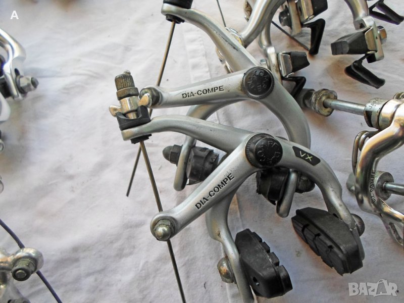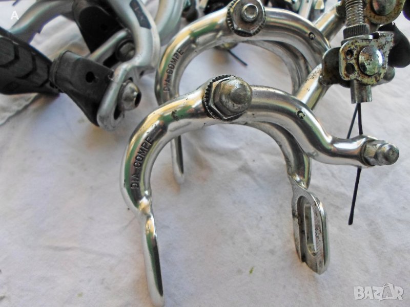Шосейни спирачки от ретро велосипеди .Shimano Dura Ace 150лв ,Shimano 600*Arabesque* 90лв ,Shimano 600Tricolor ,6403 60лв ,6400 80лв ,Shimano Z 57 80лв ,Dia Gran Compe 90лв ,Dia Compe VX 90лв ,Dia Compe G 70лв ,Suntour Superbe Pro BA SB 00S 290лв/колекционерски, едни от най качествените калиперни спирачки!/ ,Suntour Superbe 4700 100лв ,Universal Universal 100лв ,Modolo Flash 80лв ,Modolo Speedy 120лв ,Weinman Type 500 70лв ,GOLD 120лв ,CLB 70лв. .За Shimano и Dia Compe моделите имам и лостчета.