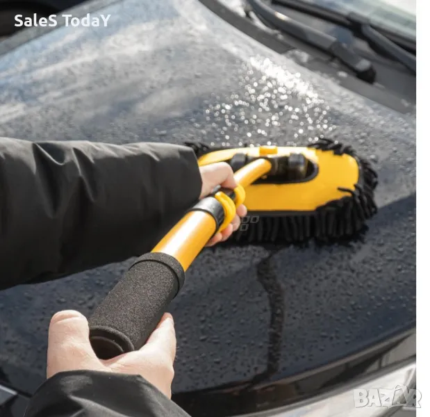 Телескопична дръжка (46-100 см): Регулируемата дължина улеснява почистването на труднодостъпни места като покрива, прозорците или долните части на автомобила.