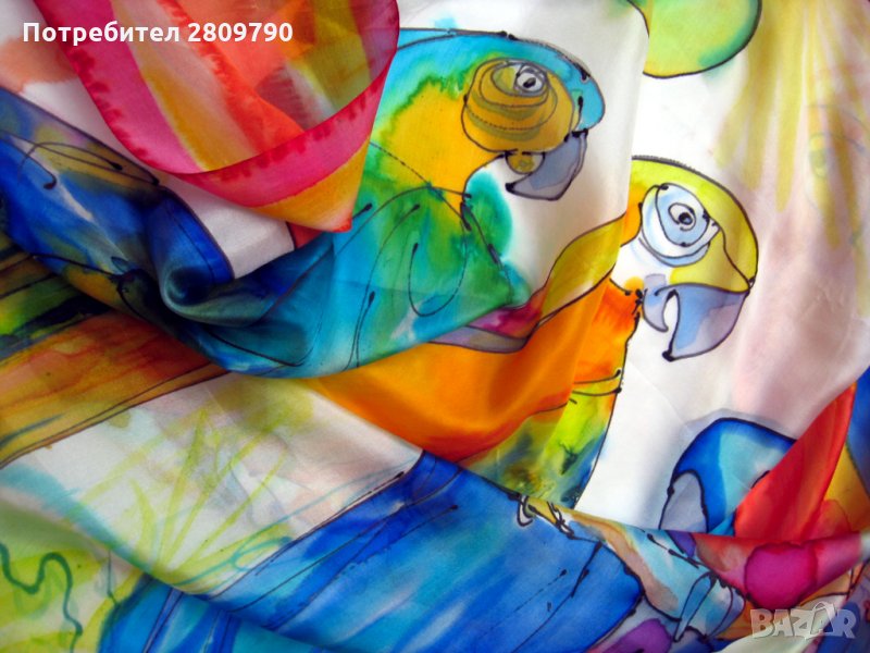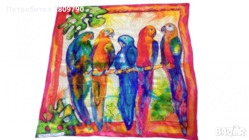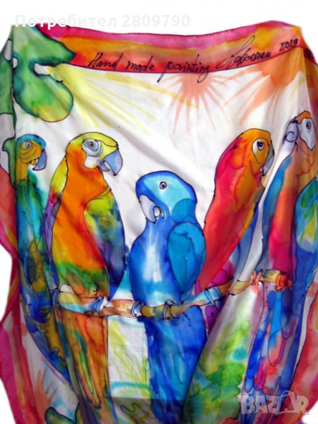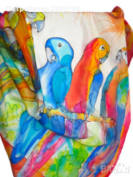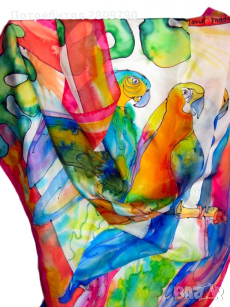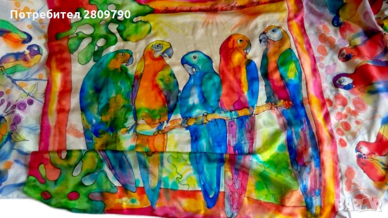 Шалът ”Веселото семейство” е изработен от най-фината, лека, ефирна коприна, наречена Pongee - 5 или excelsior (плаваща естествена с плътност 22 gsm). Той е рисуван ръчно с техниката на свободното рисуване с екологично чисти багрила, фиксирани с пара. Краищата на шала са зашити ръчно с копринени конци. Веселият рисунък и ярките цветове ще добавят палаво настроение, неповторим шик и екстравагантност към вашия образ. Оригинален подарък за рожден ден, празник, в знак на благодарност към мама, приятел, любими хора.