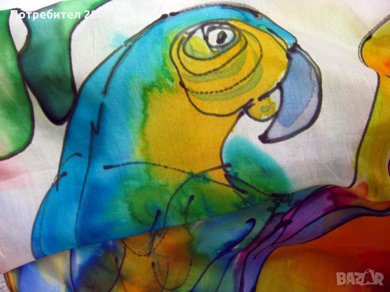 Измийте на ръка в хладка вода, с мек копринен препарат. (Размерът може леко да се различава поради факта, че боите се фиксират с пара и това може да доведе до свиване на коприната)