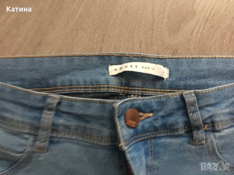 House еластични дънки.Номер на етикета 36,отговарят на размер М.Обличани малко пъти.Като нови.Amisu блуза в млечно светлокафяв цвят,от еластична материя.Размер М.Обличана веднъж.
