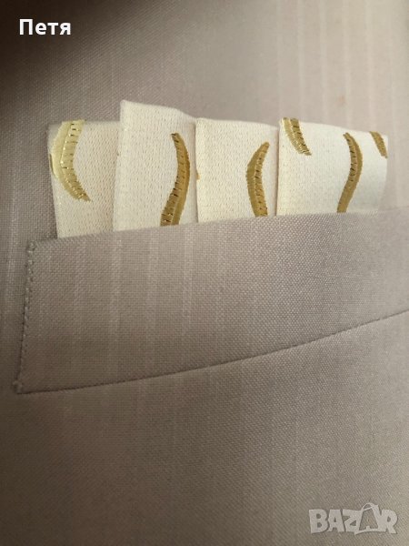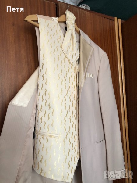 Костюма е обличан един път. Купуван е от Италия. От 5 части е - сако , елек , панталон , вратовръзка и кърпичка