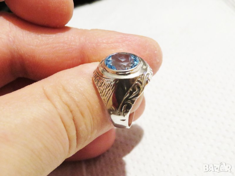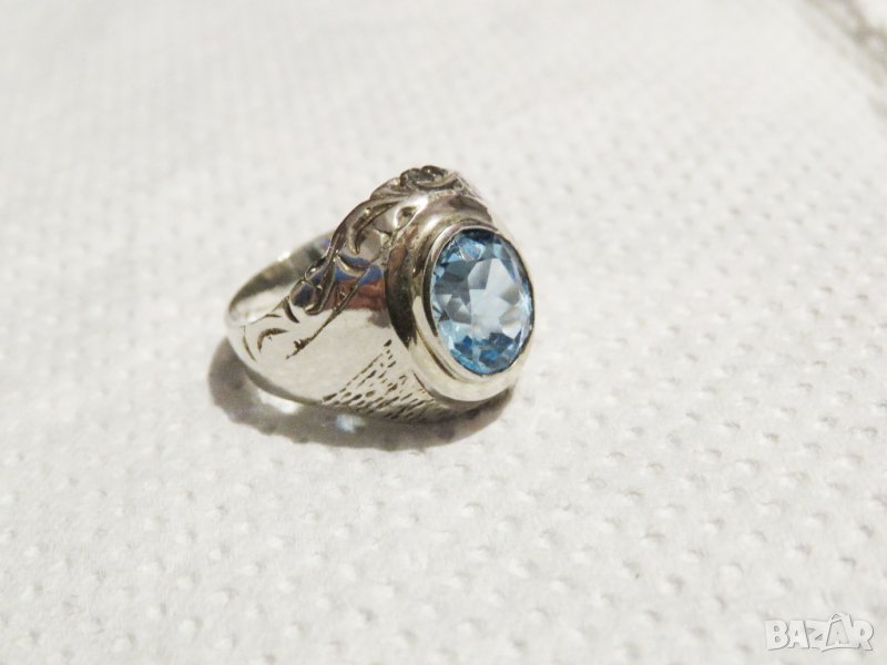 Стар мъжки сребърен пръстен с голям камък - аквамарин - стар внос от Щатите сребро