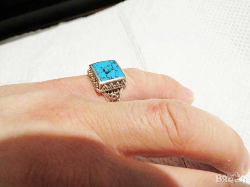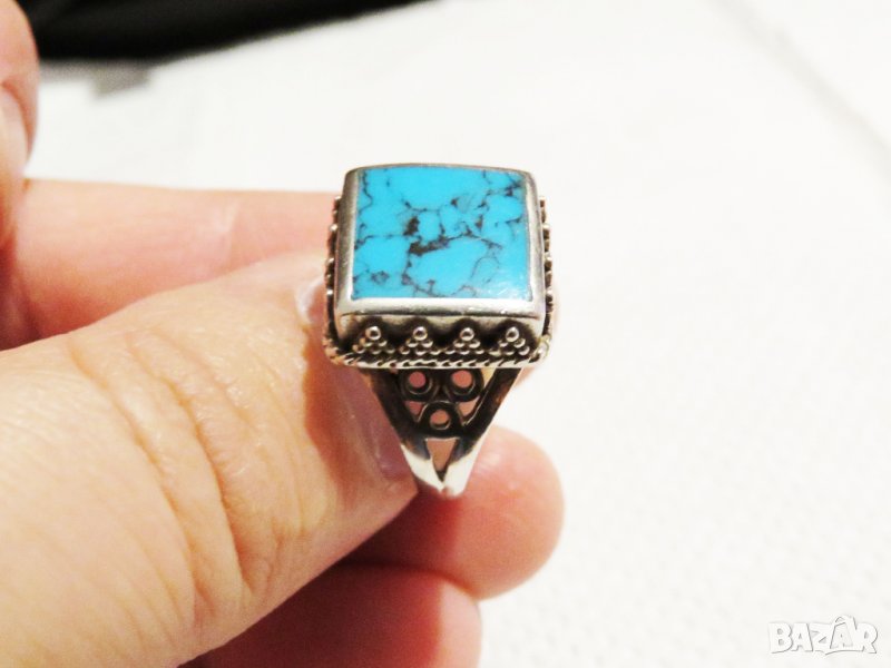 Стар марков солиден сребърен пръстен с голям Тюркоаз - камъка на мира и късмета - Солидна красота за теб .