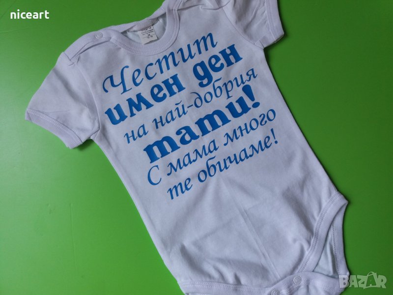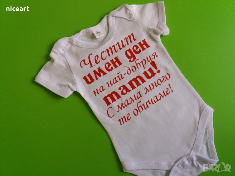 При нас може да поръчате бебешки бодита с надпис за всеки повод и по ваша идея и бебешки аксесоари с гравирано име.Изработваме също така детски тениски с надпис и семейни комплекти тениски