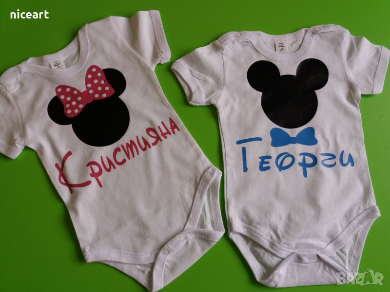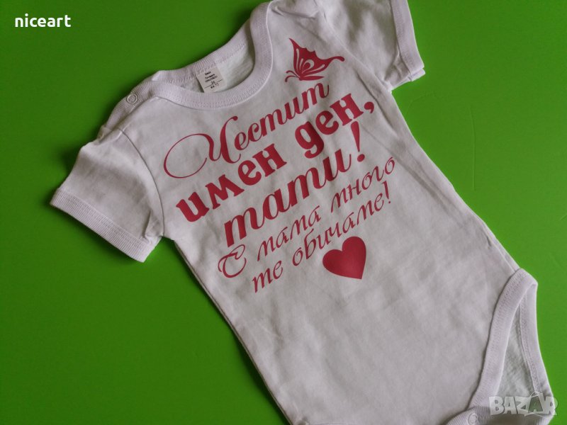 При нас може да поръчате бебешки бодита с надпис за всеки повод и по ваша идея и бебешки аксесоари с гравирано име.Изработваме също така детски тениски с надпис и семейни комплекти тениски