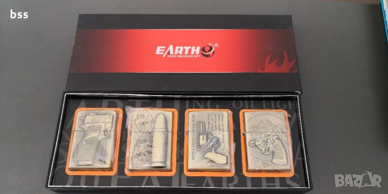Сет от четири бензинови запалки с релефни изображения на оръжия