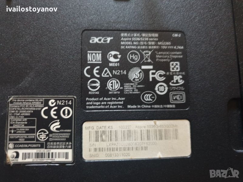Лаптоп Laptop Acer Aspire 5536/5236 работещ на части → Обява 32370540