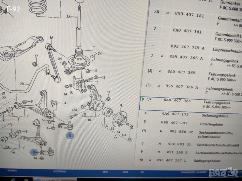 8A0407366**NEU**AUDI***Шарнир, преден мост десен (долен)