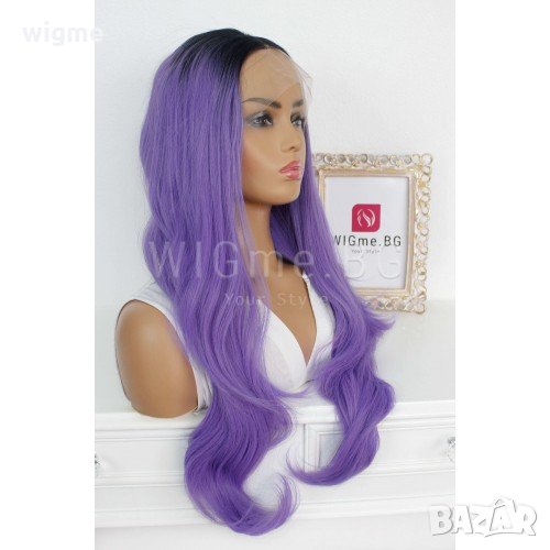 Дълга лилава лейс фронт перука Лила