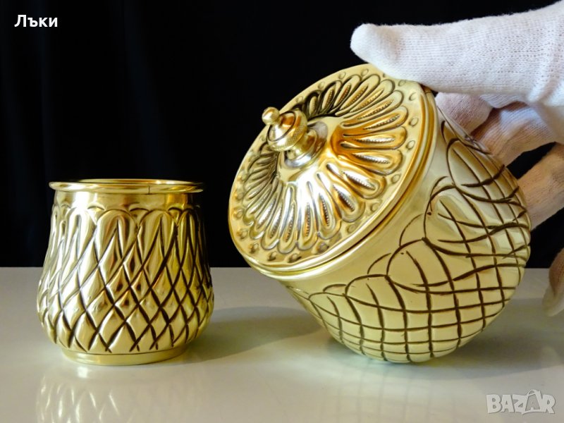 капак,ръчно кована от златен месинг с красиви релефни орнаменти.Изключителна