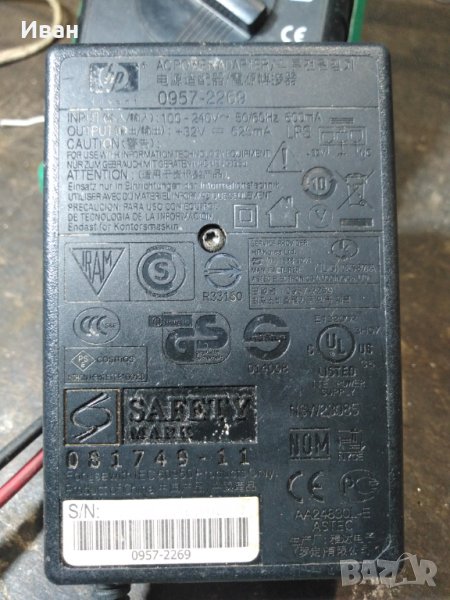 1.HP 0957-2269-32v/625mA-15 лв. 2.AC/DC адаптор 9v/1.3A-15 лв. 3.AC/DC адаптор 32v/400mA-15 лв. 4.AC/DC адаптор 24v/350mA-15лв. 5,Захранващ адаптер Hewlett Packard C6409-60014 18 V/1100 mA-20 лв 6.Зарядно DeWALT 21 V 2.5 A /от гайковерт/-25 лв