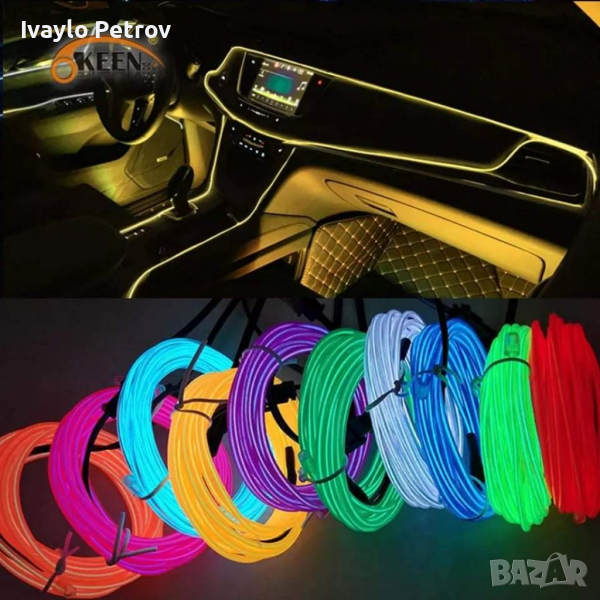 Енергоспестяваща лед интериорна лента, позната още и като амбиентно лед осветление за кола и нейния интериор. Помага за подобряване на визуалната разделителна способност на интериорните елементи, ще намали зрителната умора при дълго пътуване, безопасна за зрението. Лесно се огъва във всякаква форма. Подходяща е за използване в автомобили, камиони, каравани, партита, къмпинг, декорация на барове и др.