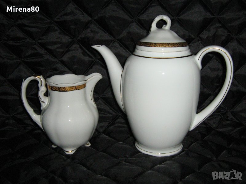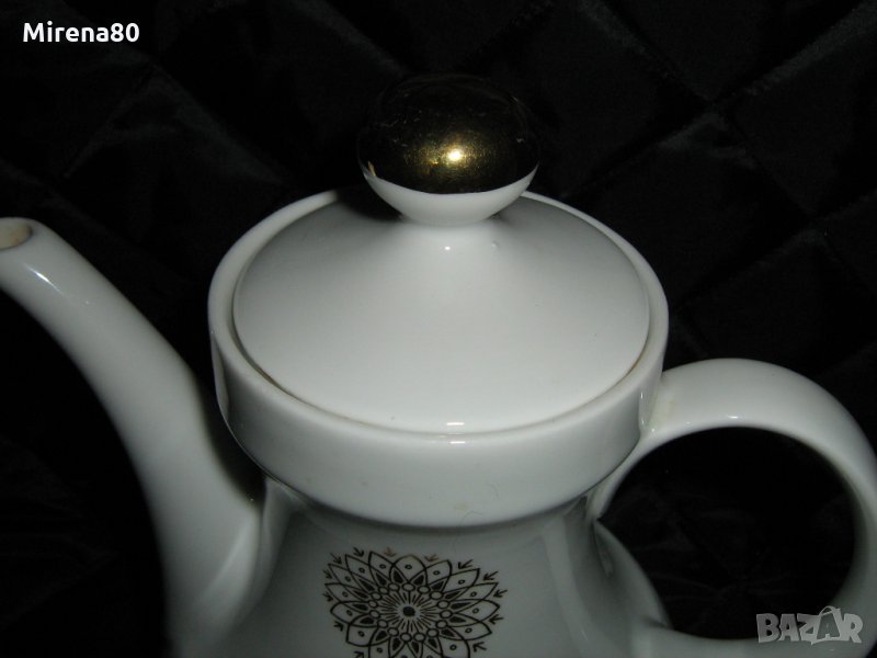 порцелан с позлата, единият чайник и каничката (които са на обща снимка) са с еднакъв златен филигран. Маркирани за произход.