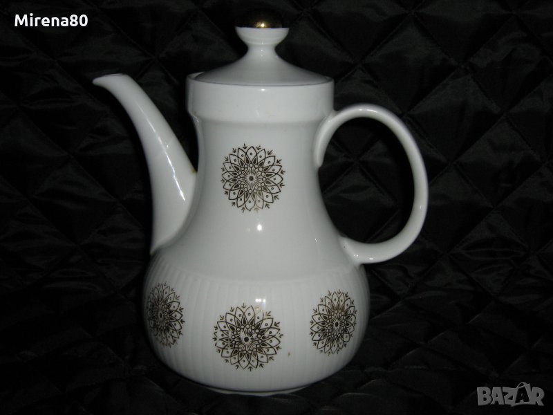 Бял чайник със златни кръгове по него - вис. 21 см, шир. 20 см - цена 28 лв