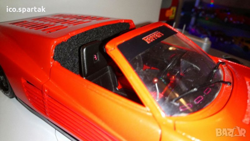 Продавам Ferrari 1:18 Testarossa spider 84 г. Модела е в отлично състояние без липси и забележки, модифициран ръчно от купе, база Bburago. На практика модела е нов, пребоядисан интериор и екстериор, джанти, декалии Ferrari.
