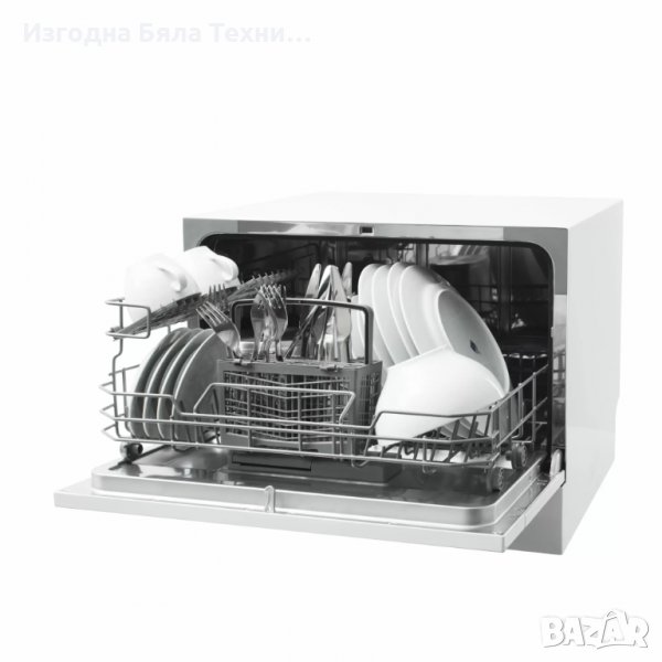 Самостоятелната съдомиялна машина Inventum VVW5520 е подходяща за настройки на 6 места. Тази енергийно ефективна съдомиялна машина с клас на енергийна ефективност F използва само 6,5 литра вода на измиване. Можете да избирате между шест програми, включително ECO режим и хигиенен режим за много мръсни съдове. Освен това е възможно избраната програма да стартира 2, 4 или 8 часа по-късно.