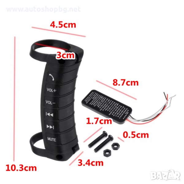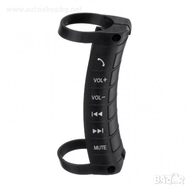 Безжично универсално bluetooth дистанционно управление за волан за мултимедии 2 DIN (DVD MP5 player) с 6 бутона, лесно за инсталиране и здраво фиксиране към волана. Улеснява работата с мултимедийния плейър по време на шофиране като може да приемате телефонни разговори; да увеличавате или намалявате звука по време на разговор или на мултимедията; да превключвате между песните, както и да изключите звука на плейъра.