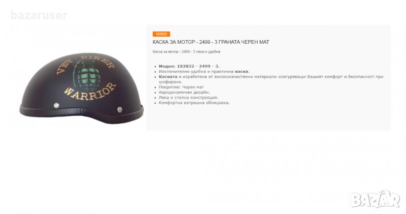 Каска за Мотор Граната Черен Мат 182832-2499 → Обява 32403583