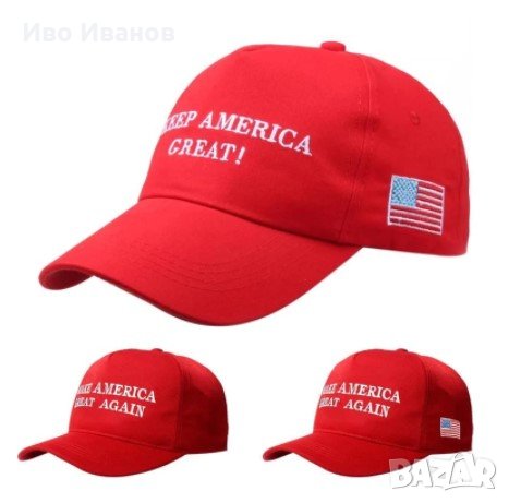 шапка в стила на президента на USA Доналд Тръмп. Налична в цвят червен и бели бродирани букви-“Make America Great