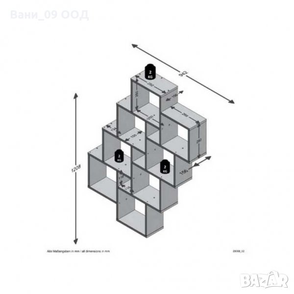 Състои се от 8 големи и 3 малки рафта. Повърхност от меламиново покритие, устойчиво на надраскване.