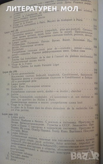 Модели диалогов: L'arrivee a Moscou, De la gare a l'hdtel, line promenade a travers Moscou, Itineraire a travers U.R.S.S., Presentations, Arrivee a Paris, De l'aeroport a Paris, A l'hdtel, Une promenade dans Paris, Dans la rue, Itineraire a travers la France, Passe-temps