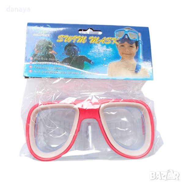 Детски очила за плуване тип маска. Подходящи за деца от 3 до 8 години. Предлагат се в различни цветове.